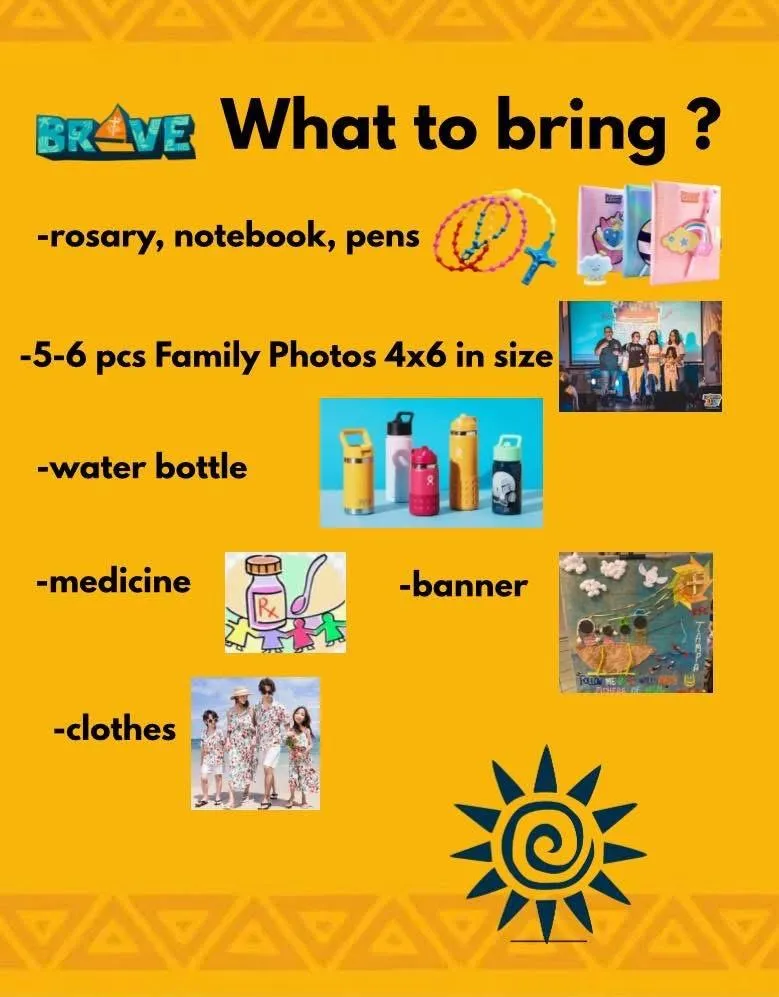 Bring your area banner (prepare a cheer during the parade) and talent show materials, if any.